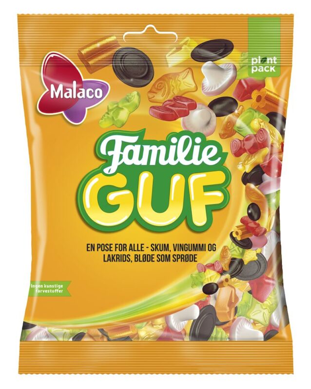 Malaco Famile Guf er en blandet slik pose til alle slags familier. En spændende blanding med skum, vingummi og lakrids, bløde som sprøde. Med Malaco slik poser kan du holde lørdag hele ugen.
